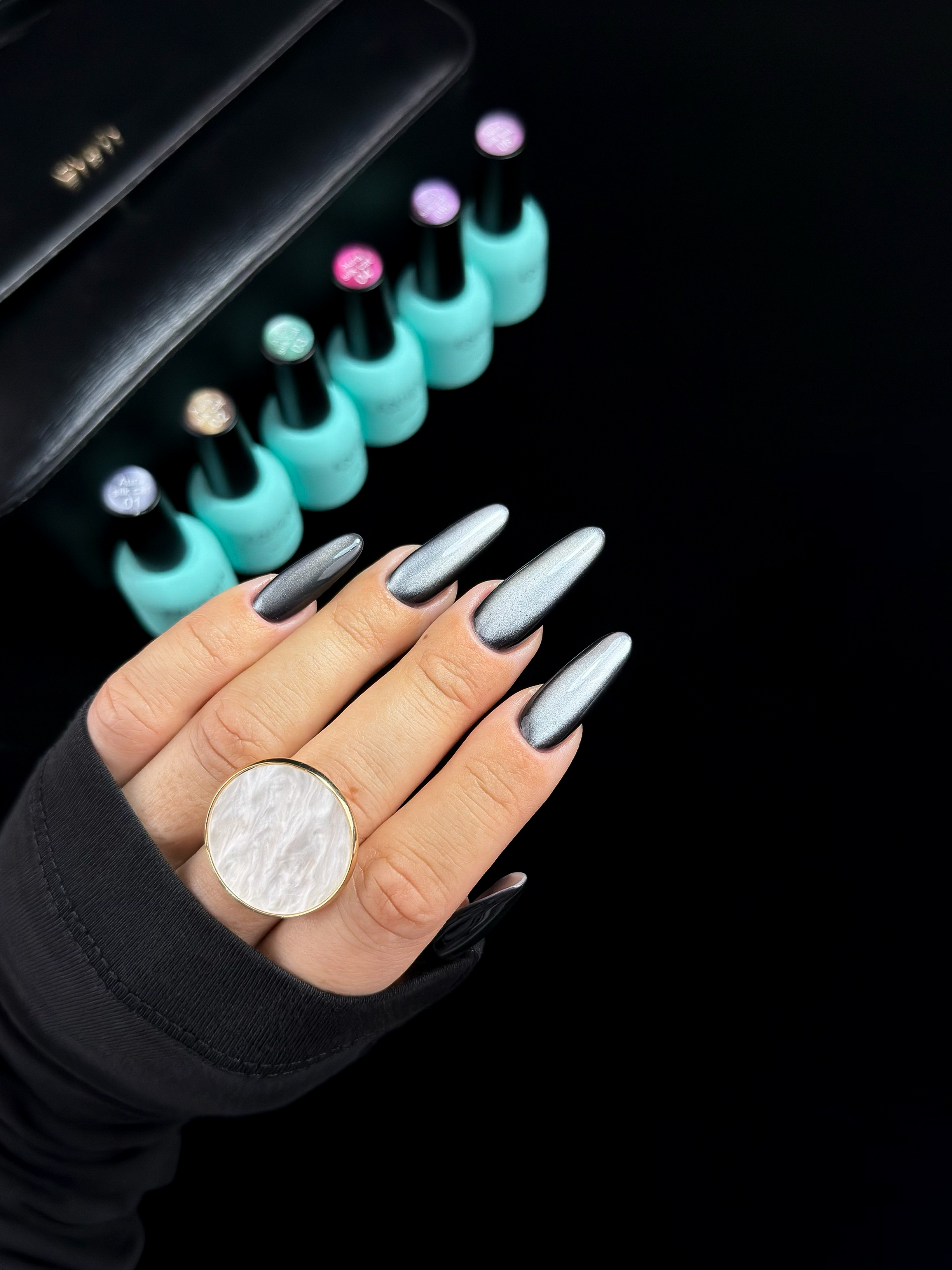 Шесть оттенков, каждый со своим характером: от холодного дымчато-стального до теплого нежно-розового. Это не просто кошачий глаз - это эффект парящего блика, который скользит по ногтю, как луч по гладкому шелку.