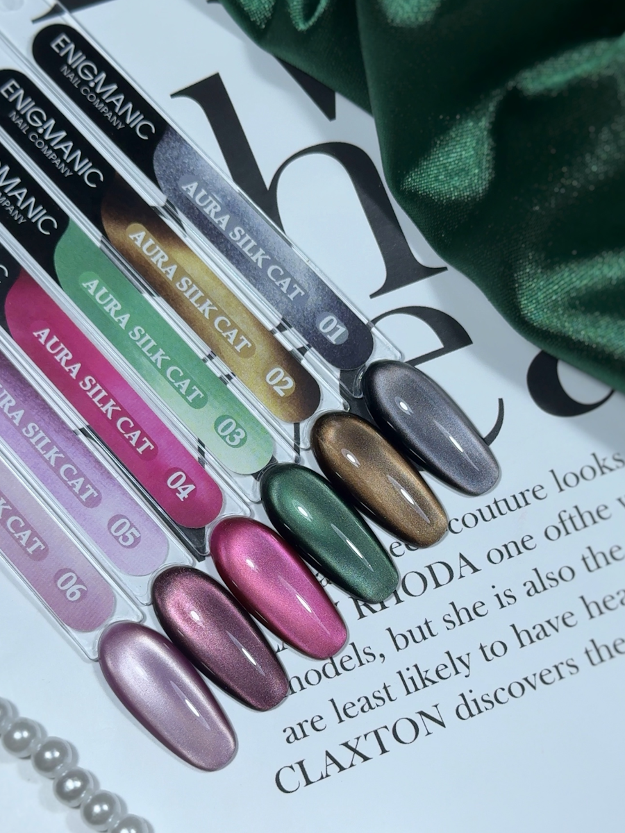 Коллекция гелевых лаков «AURA Silk Cat» - шелковые “кошечки”, которые играют светом, как живая ткань.