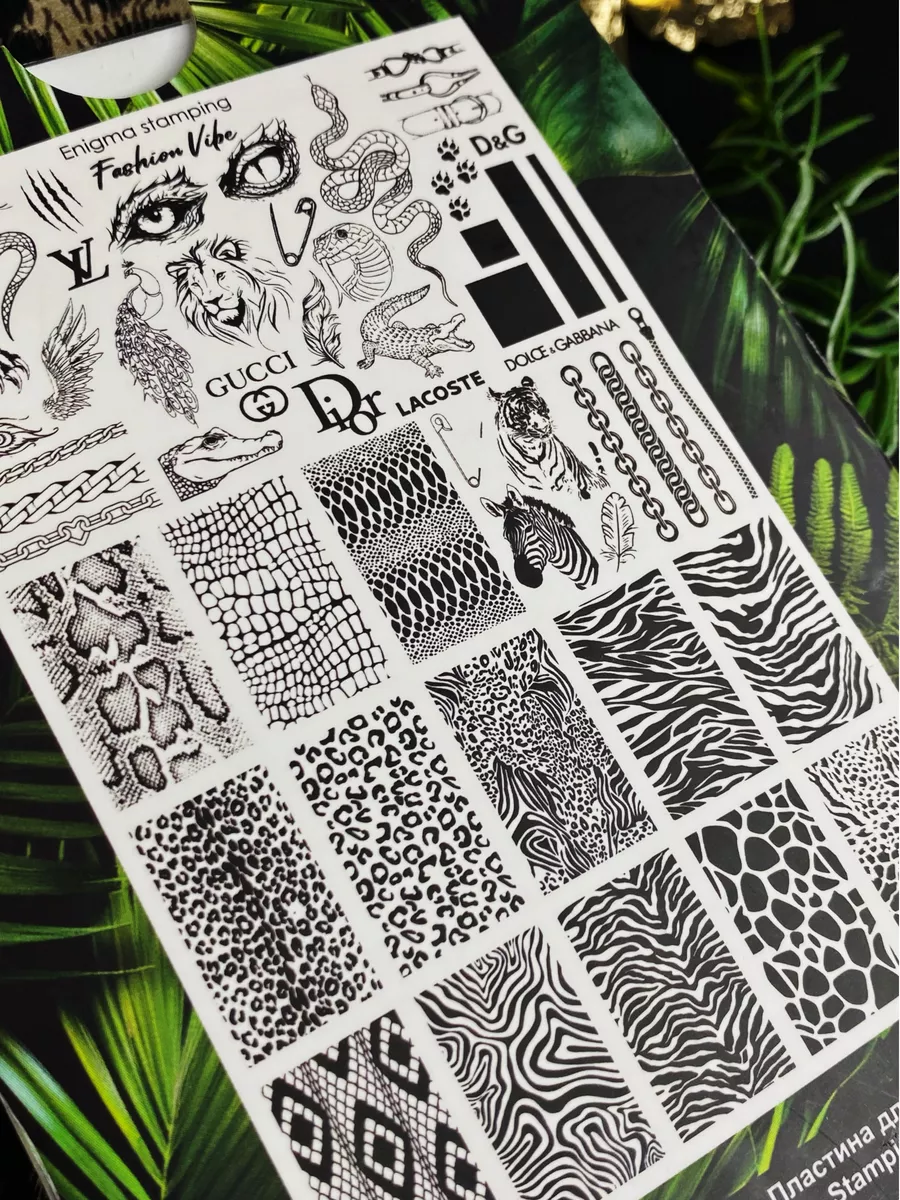 Пластина Fashion Vibe - это классика, «коврики» с животными принтами необходимы в арсенале каждому nail мастеру. Это дизайны на каждый день, праздник и особый случай.
