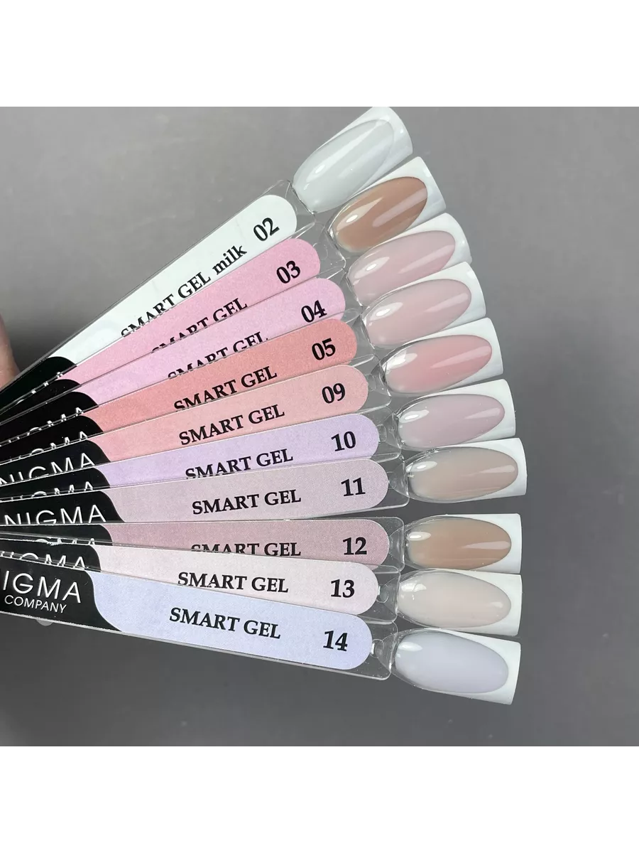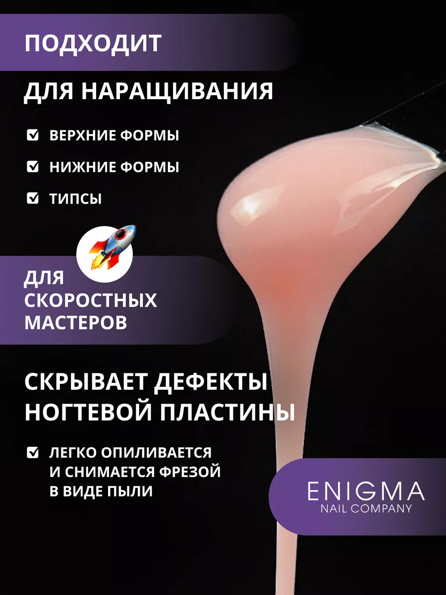 Enigma SMART Liquid gel-абсолютно безопасный, быстрый, комфортный, бескислотный жидкий гель. Он сочетает в себе твёрдость и прочность как у геля и лёгкость нанесения как у базы.