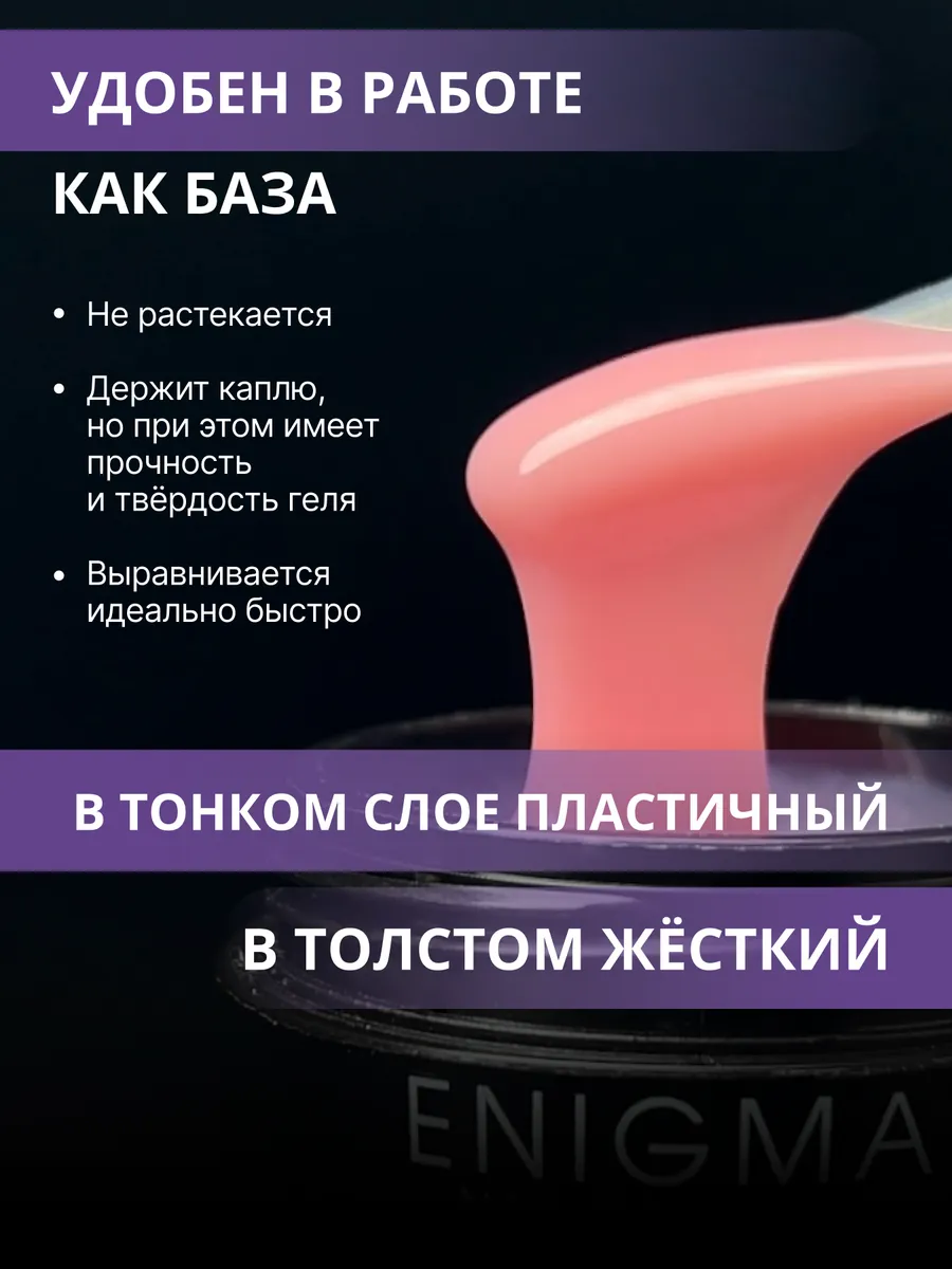 Enigma SMART Liquid gel-абсолютно безопасный, быстрый, комфортный, бескислотный жидкий гель. Он сочетает в себе твёрдость и прочность как у геля и лёгкость нанесения как у базы.