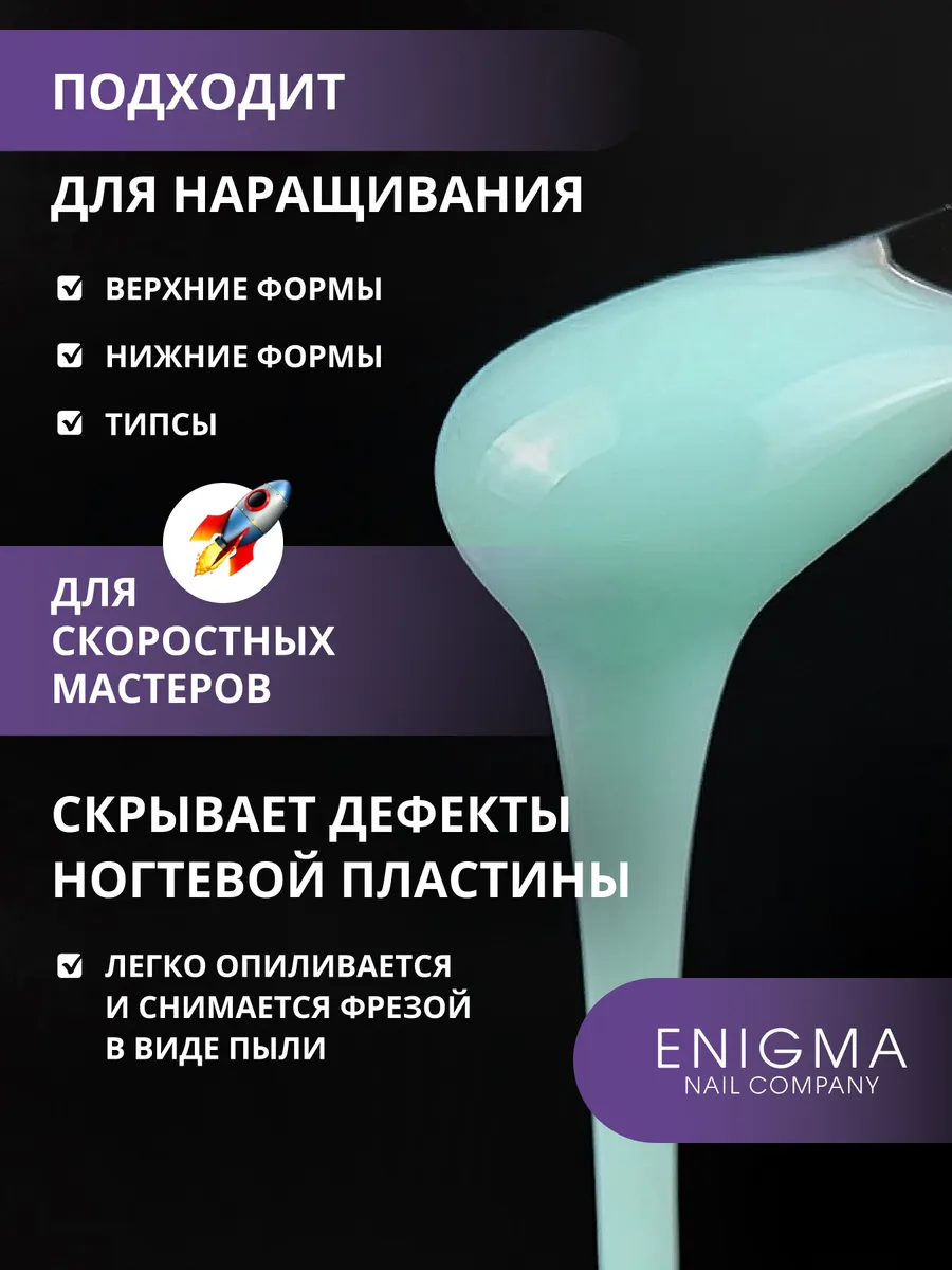 Enigma SMART Liquid gel-абсолютно безопасный, быстрый, комфортный, бескислотный жидкий гель. Он сочетает в себе твёрдость и прочность как у геля и лёгкость нанесения как у базы.