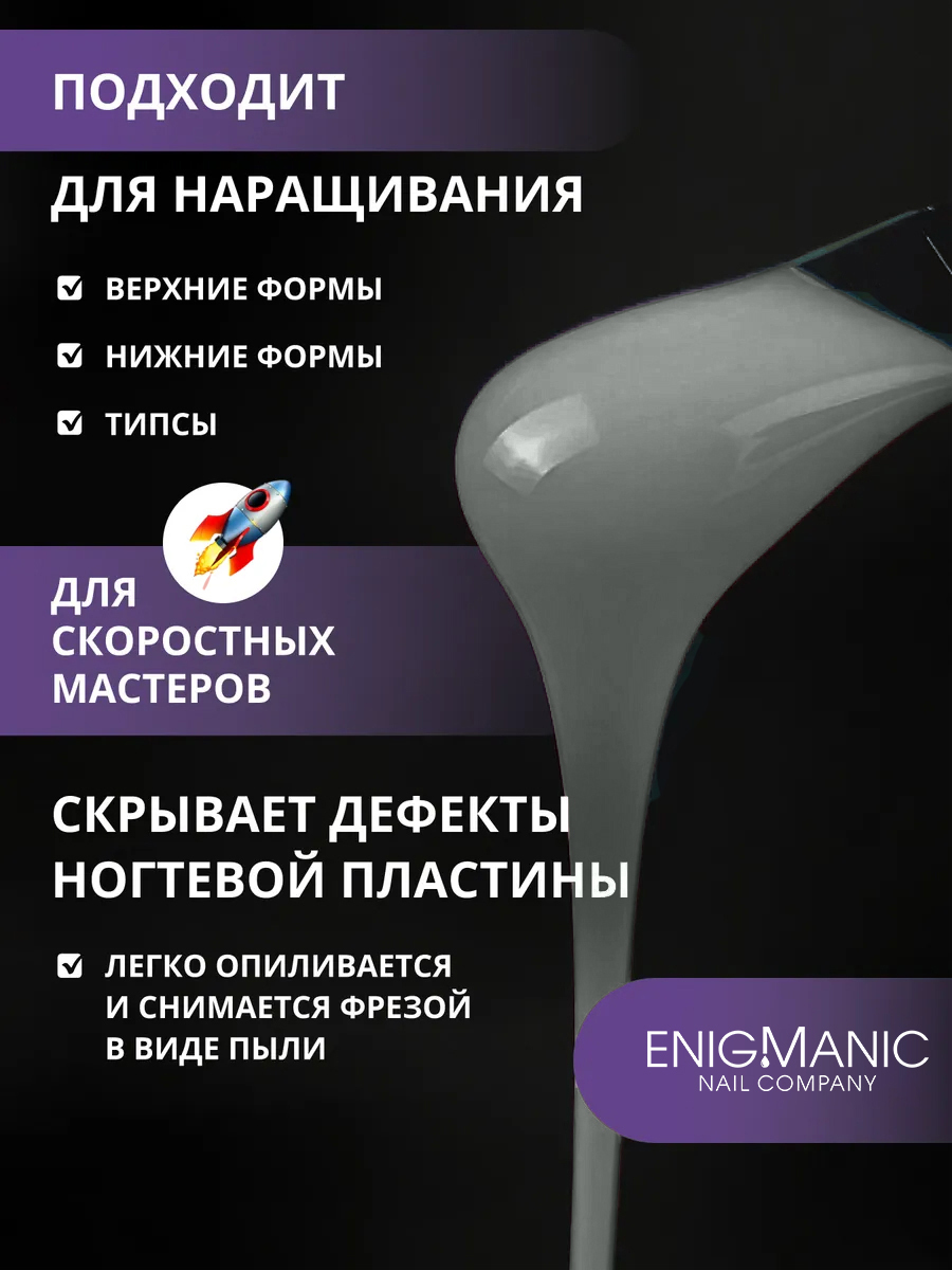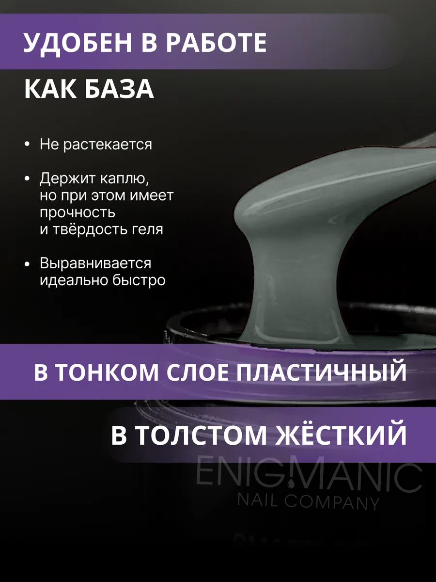 Enigma SMART Liquid gel-абсолютно безопасный, быстрый, комфортный, бескислотный жидкий гель. Он сочетает в себе твёрдость и прочность как у геля и лёгкость нанесения как у базы.