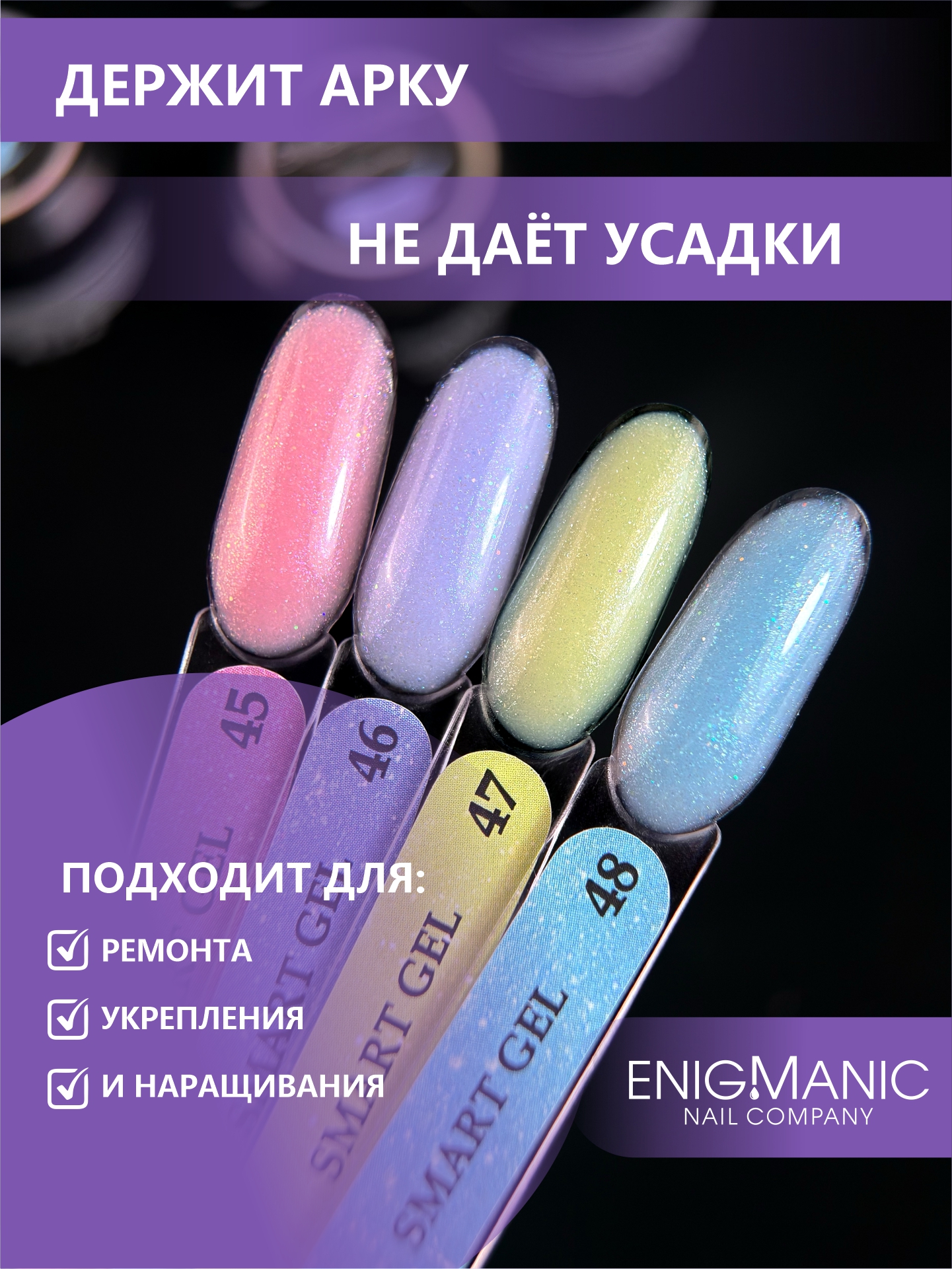 Enigma SMART Liquid gel-абсолютно безопасный, быстрый, комфортный, бескислотный жидкий гель. Он сочетает в себе твёрдость и прочность как у геля и лёгкость нанесения как у базы.
